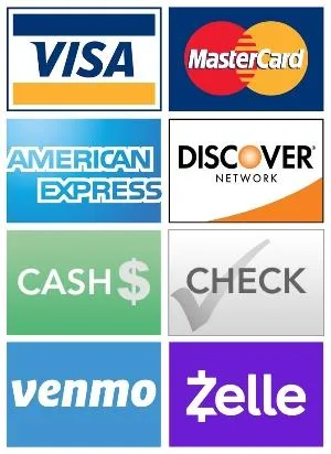 We accept payment by Visa, MasterCard, American Express, Discover, Venmo, Zelle, cash, or check. Financing available.